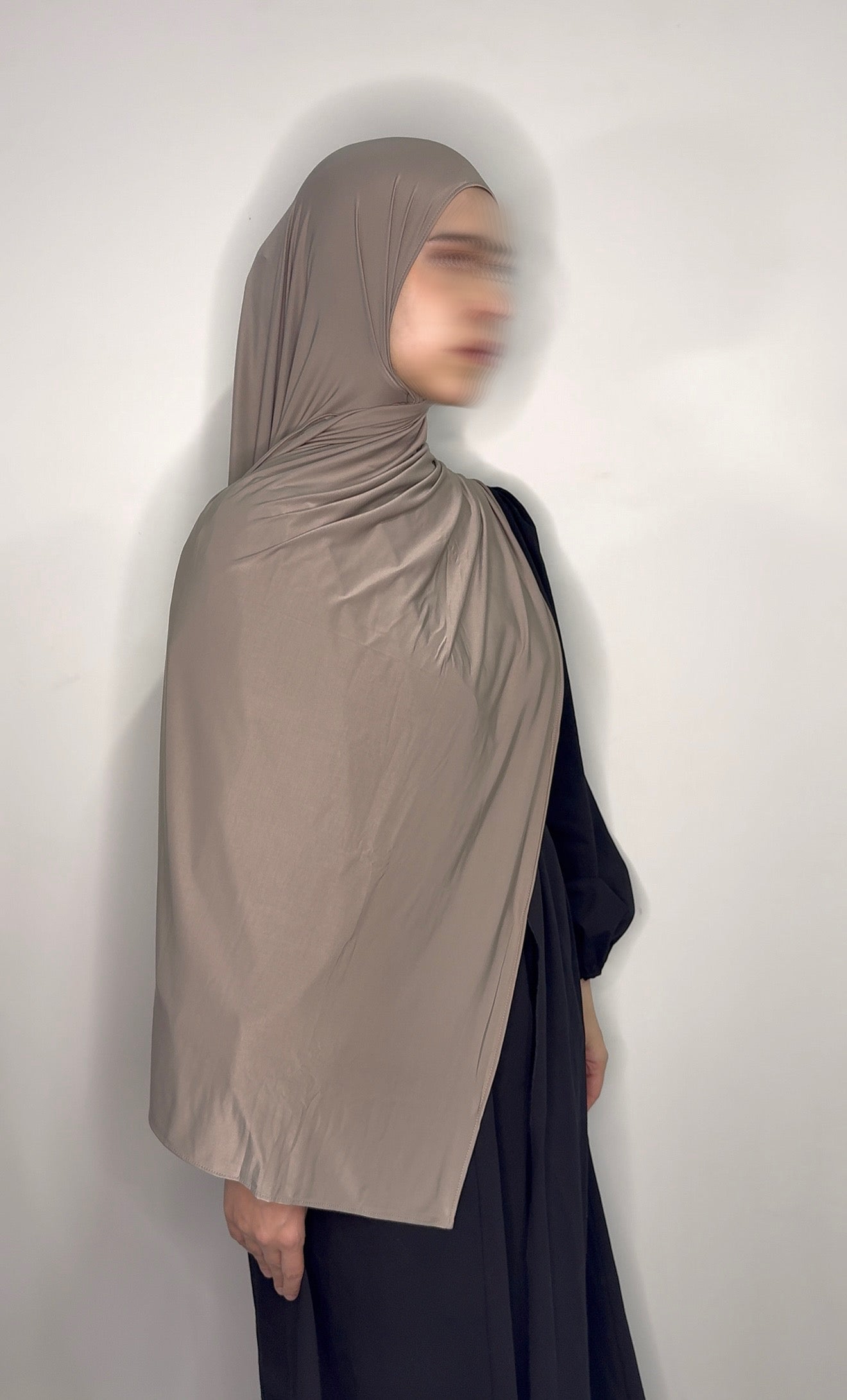 Liquid jersey is a premium fabric designed with a beautiful fluid drape that naturally frames the face and holds pleats exactly the way you style it. It features a subtle sheen that elevates any outfit, while remaining lightweight yet completely non-see-through. The texture has a silky-soft touch, making it comfortable for all-day wear.