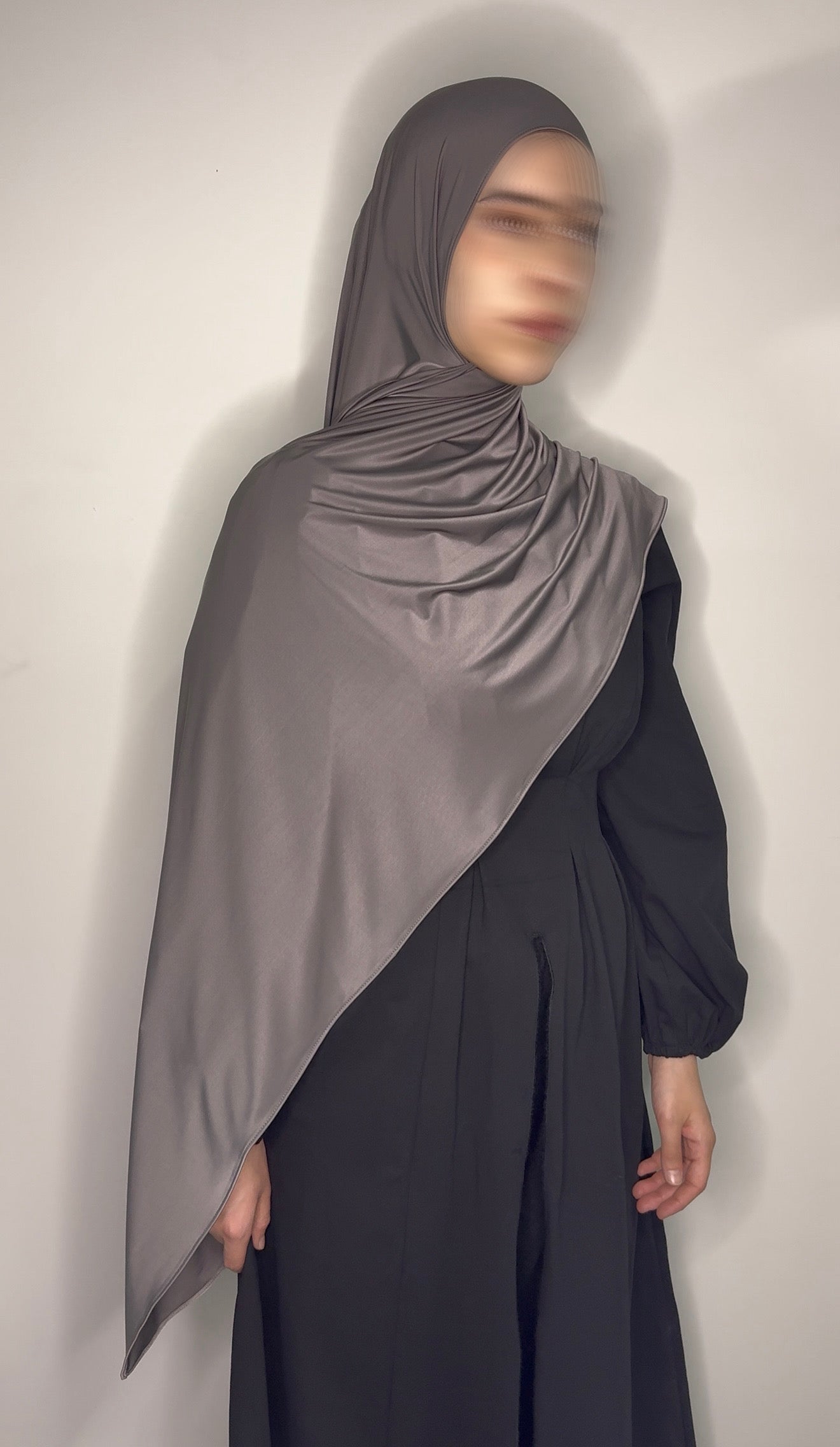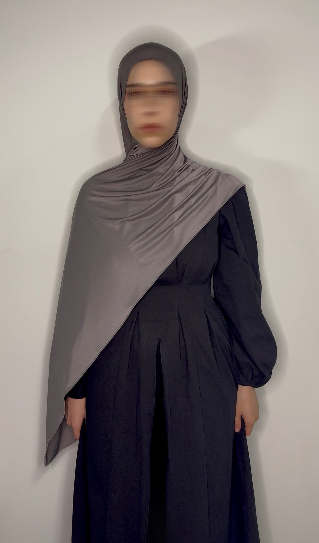 Liquid jersey is a premium fabric designed with a beautiful fluid drape that naturally frames the face and holds pleats exactly the way you style it. It features a subtle sheen that elevates any outfit, while remaining lightweight yet completely non-see-through. The texture has a silky-soft touch, making it comfortable for all-day wear.