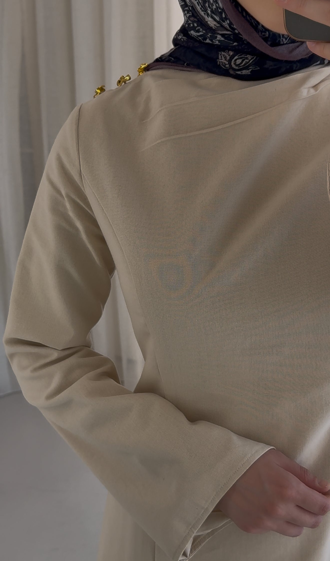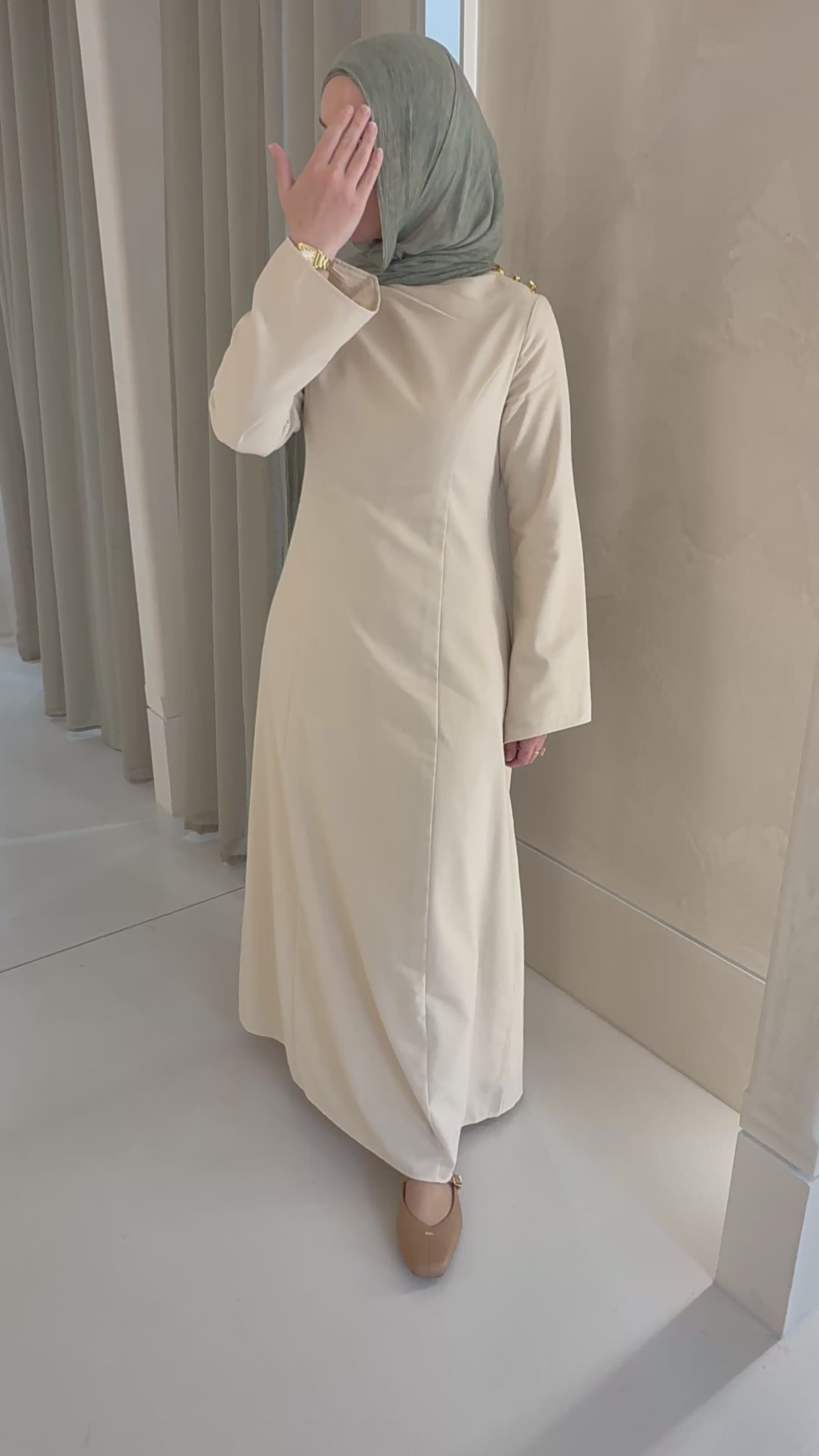 The Sena Dress is a refined blend of modesty and style, crafted from a breathable linen blend fabric and fully lined for added coverage. Designed in a rich dark beige tone, it offers a neutral yet elegant palette perfect for any season.